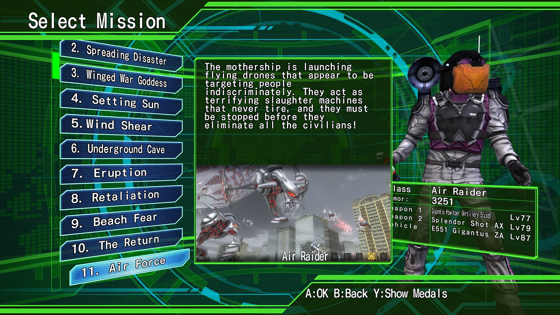 Air Force is the eleventh mission in Earth Defense Force 2025 and Earth Defense Force 4.1: The Shadow of New Despair.