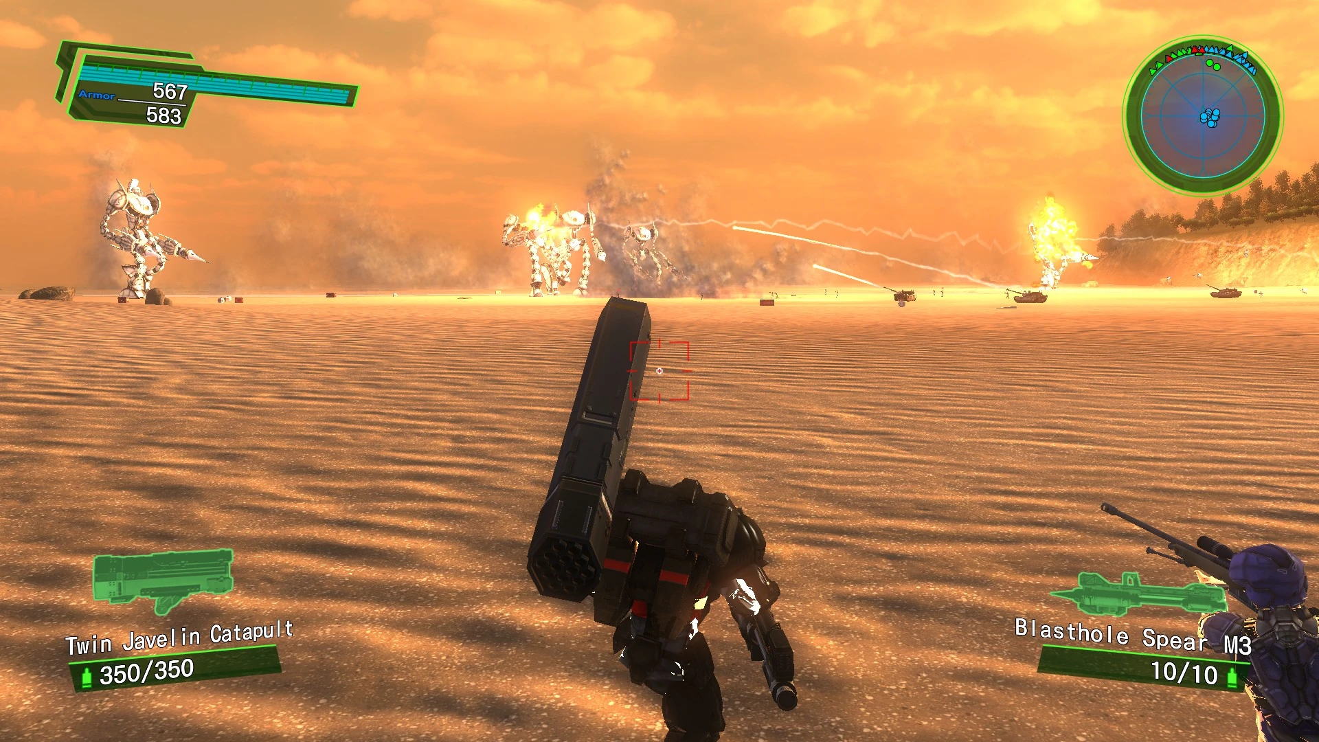 After the first wave of Hectors is disposed of, a second will appear, but at this point the EDF will launch a series of airstrikes that will thin out their numbers considerably, though unfortunately also leave a lot of items in deep water where it is impossible to retrieve them. There are three bombing runs, two targeting the distant Hectors and one along the left side of the beach where a group are sneaking ashore on the flank.
